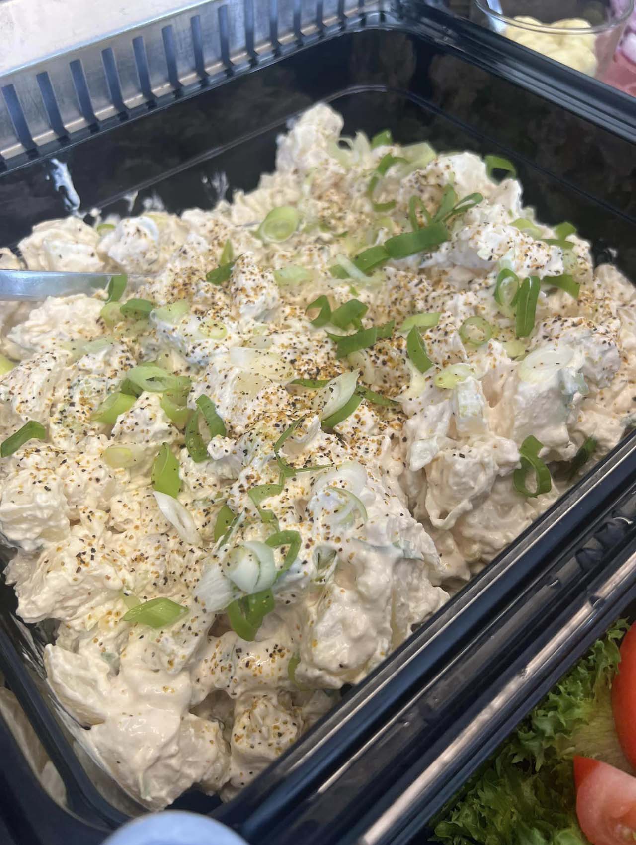 - Ainas spesial salat med kylling, bacon og brie kr 139,- (serveres med dressing, smør og brød)