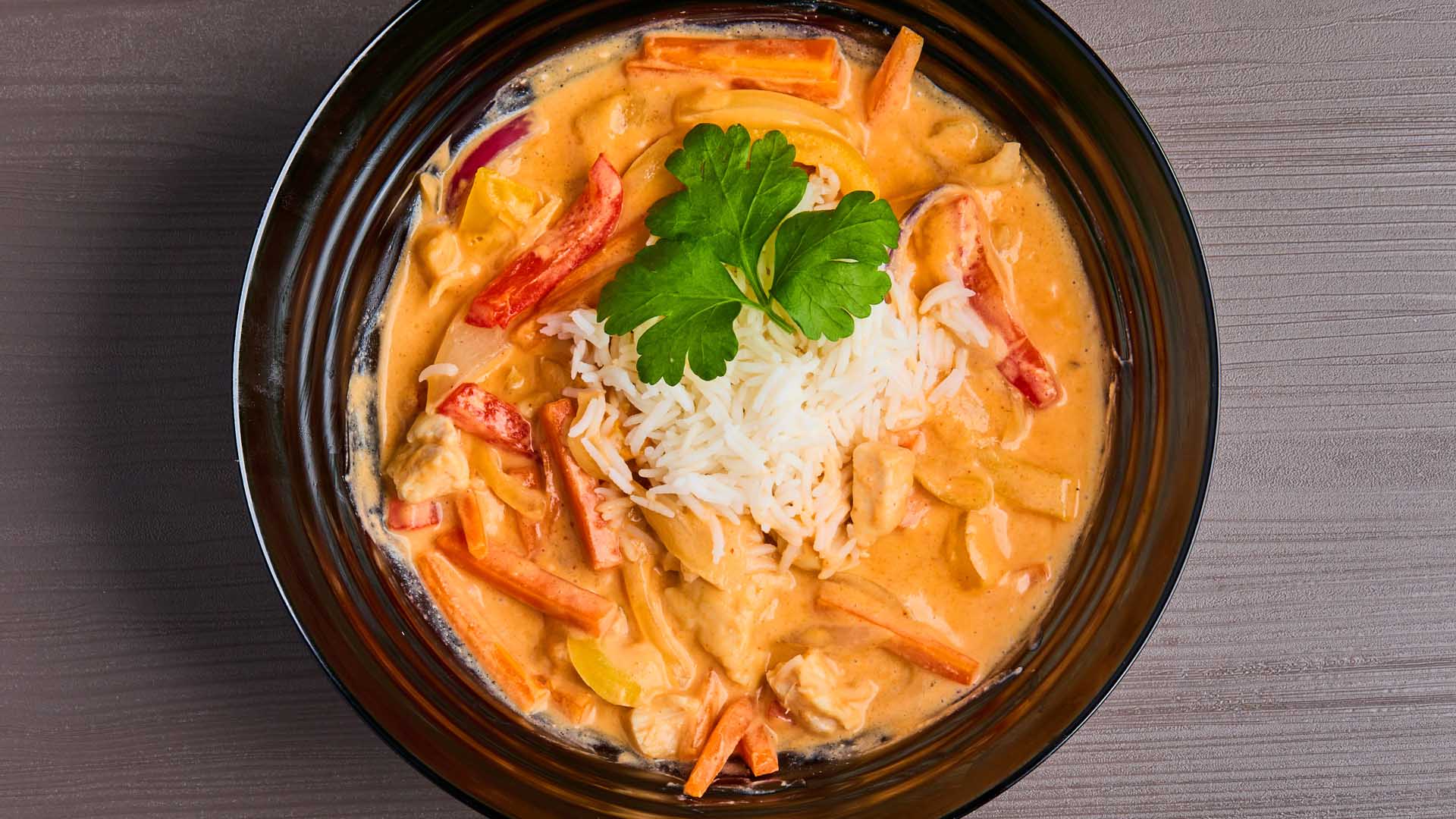 - Kyllinggryte med ris, salat og loff kr 210,- pr pers